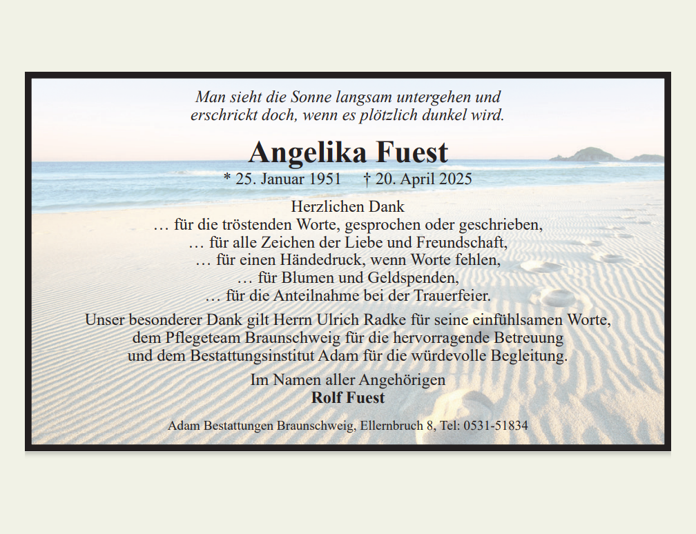 Liebe Trauernde, es ist egal, zu welchem Zeitpunkt man einen Menschen verliert - es ist immer zu früh und es tut immer weh. Daher wünschen wir Ihnen von Herzen, dass Sie durch Worte, Taten oder eine Umarmung Trost, Kraft und Halt finden. Diese Gedenkseite soll Ihnen die Möglichkeit geben, Ihre Trauer zu teilen und das Andenken an einen geliebten Menschen zu bewahren. Herzlichst Ihr Team der Waldbestattung Cremlinger Horn